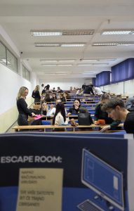 Pod mentorstvom doc. dr. sc. Marije Kvasine, kreiran je interaktivni Escape room na temu spašavanja fakultetskog servera, u kojem su studenti morali riješiti niz informatičkih zagonetki kako bi dešifrirali kodno rješenje. Ova dinamična aktivnost potaknula je kreativno razmišljanje, timski duh i primjenu stečenog znanja u praksi.