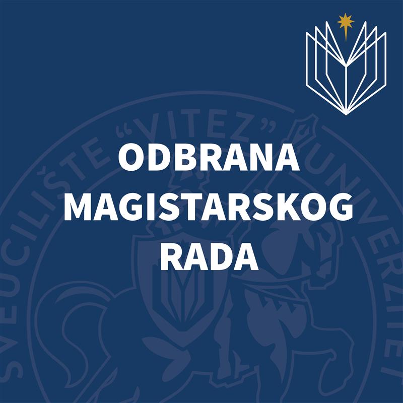 U ponedjeljak, 10.11.2025.godine u 13:00 sati u prostorijama Sveučilišta/Univerziteta “VITEZ“ u Travniku, bit će upriličena odbrana magistarskog rada za kandidata